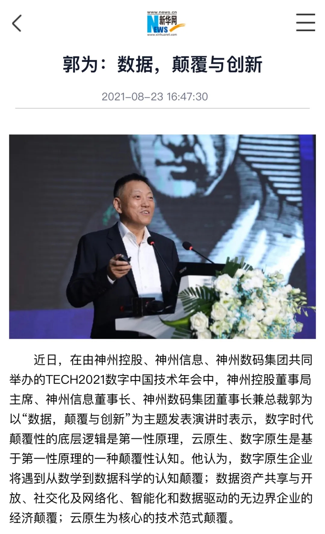 神州控股郭为:数字原生企业将面临以云原生为核心的技术范式颠覆