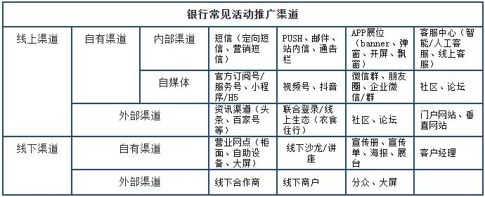 ③整合运营渠道资源,活动推广需要结合现有资源进行整合,全方位覆盖客户,如线上线下渠道可以组合推广,来线下网点客户可以引导线上参与活动等。